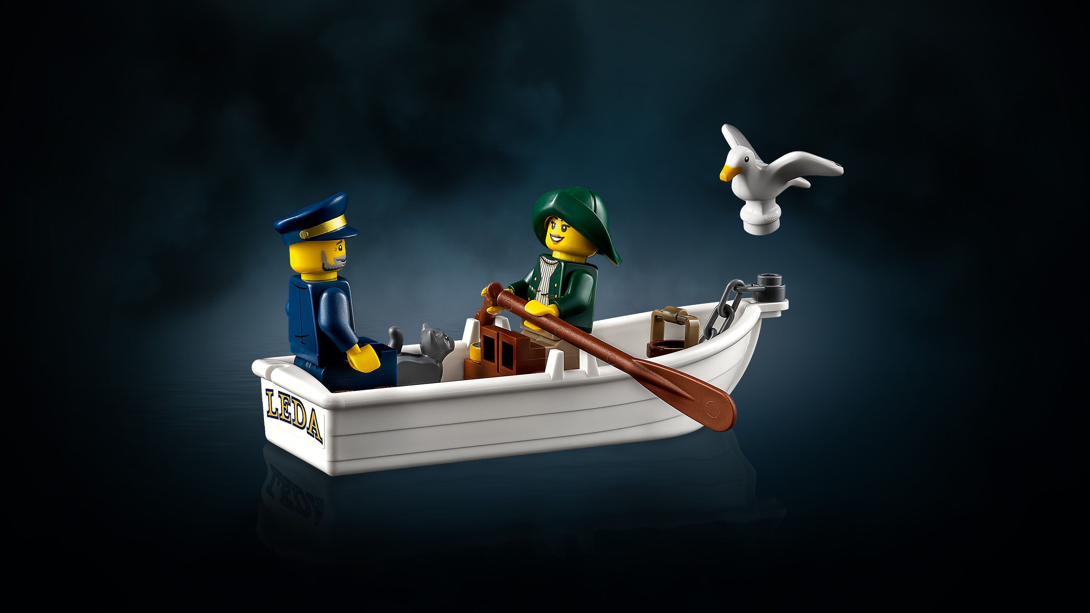 - Extra's: De set bevat ook een schatkist met piratengoud, een roeiboot en diverse minifiguren, waaronder een vuurtorenwachter, zeemeeuw en kat.