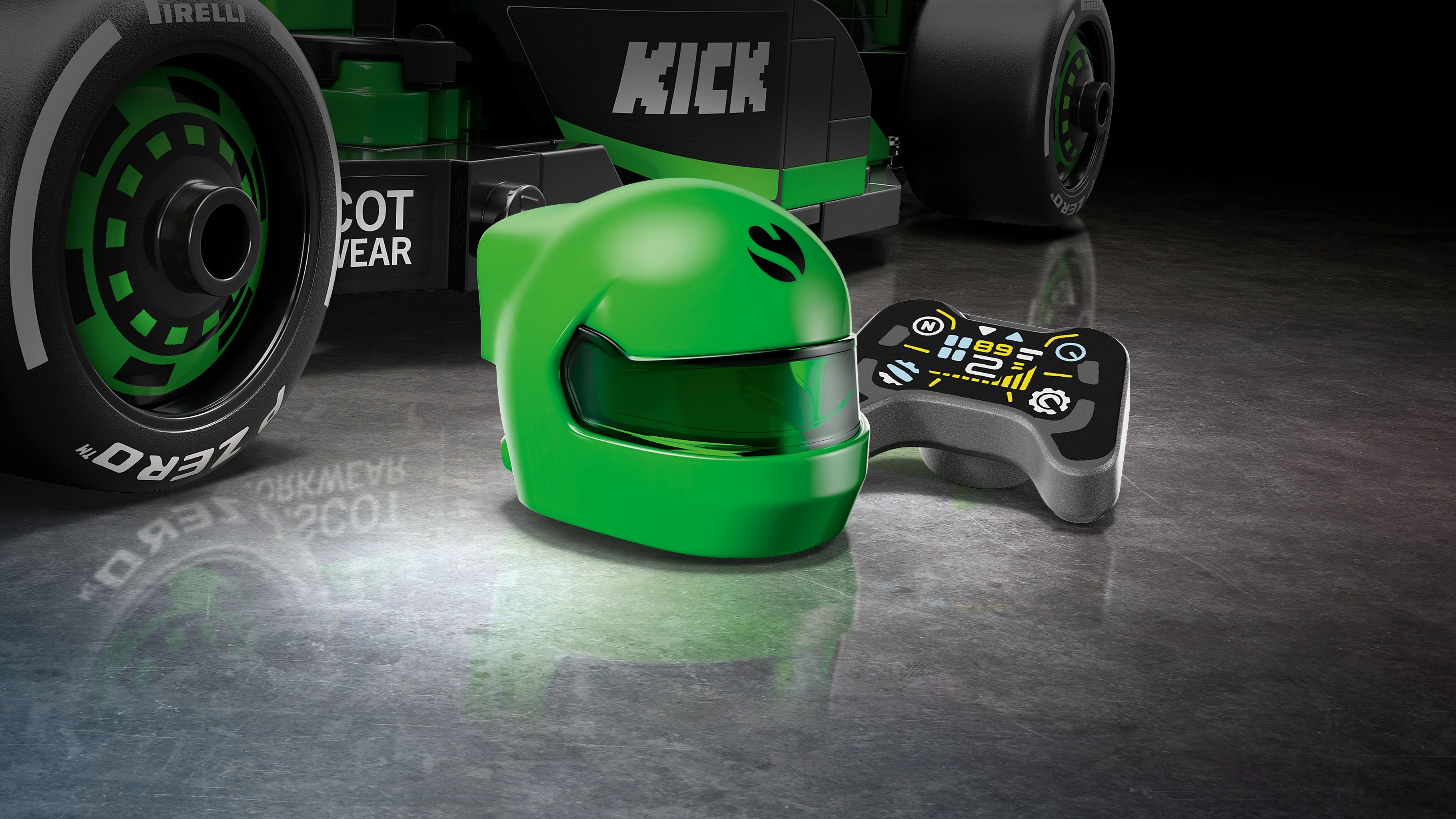- Minifiguur: Inclusief een minifiguur van een Kick Sauber coureur, compleet met racepak en helm.
