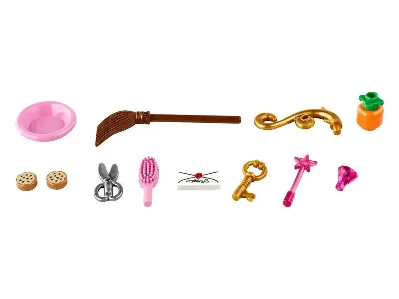 - Accessoires zoals een strijkstok, toverstok, tiara en glazen pantoffels