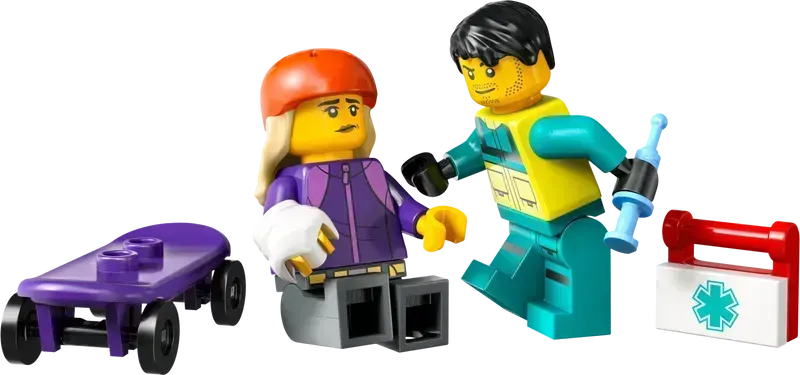 - Twee minifiguren: Bij de set zitten twee minifiguren: een ambulancechauffeur en een patiënt. Met deze minifiguren kun je eindeloze verhalen bedenken.