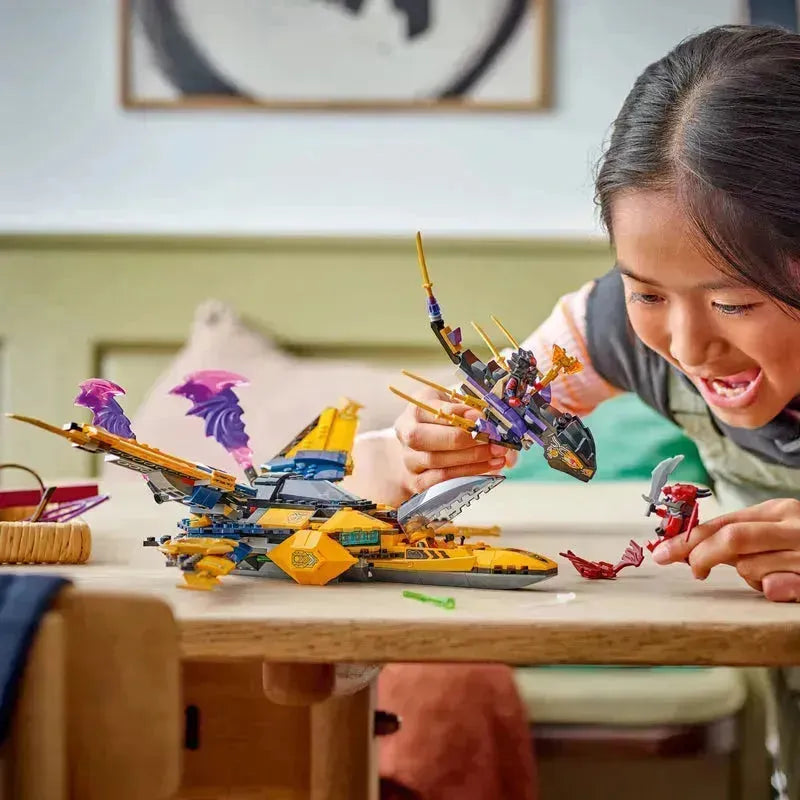 Bereid je voor op een storm van avontuur met de LEGO NINJAGO 71833 Ras & Arin's Super Storm Jet! Dit indrukwekkende vliegtuig, geïnspireerd door de spannende serie Dragons Rising, is een must-have voor elke NINJAGO fan.